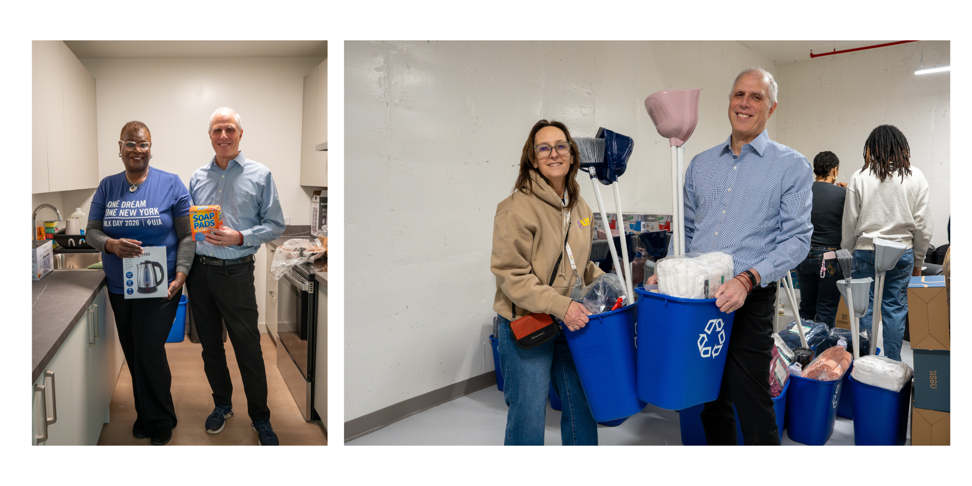 Staff from across the organization volunteered alongside community partners, including President & CEO Perry Perlmutter and Chief Program Officer Monica Santos, reflecting our shared belief that service and leadership go hand in hand. Because of this collective effort, 55 individuals and families transitioning from shelters into supportive housing will move into homes that feel ready, welcoming, and cared for. From pots and pans to linens, shower curtains, and spice racks, each item helped transform an empty apartment into someone’s first stable home in a long time.